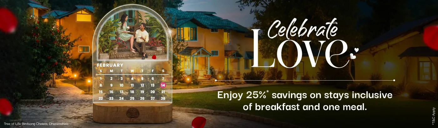 Let love unfold gently—in places where time slows and moments linger. With Celebrate Love at Tree of Life, enjoy 25% savings on your stay, inclusive of breakfast and one meal, meant to be savoured together.